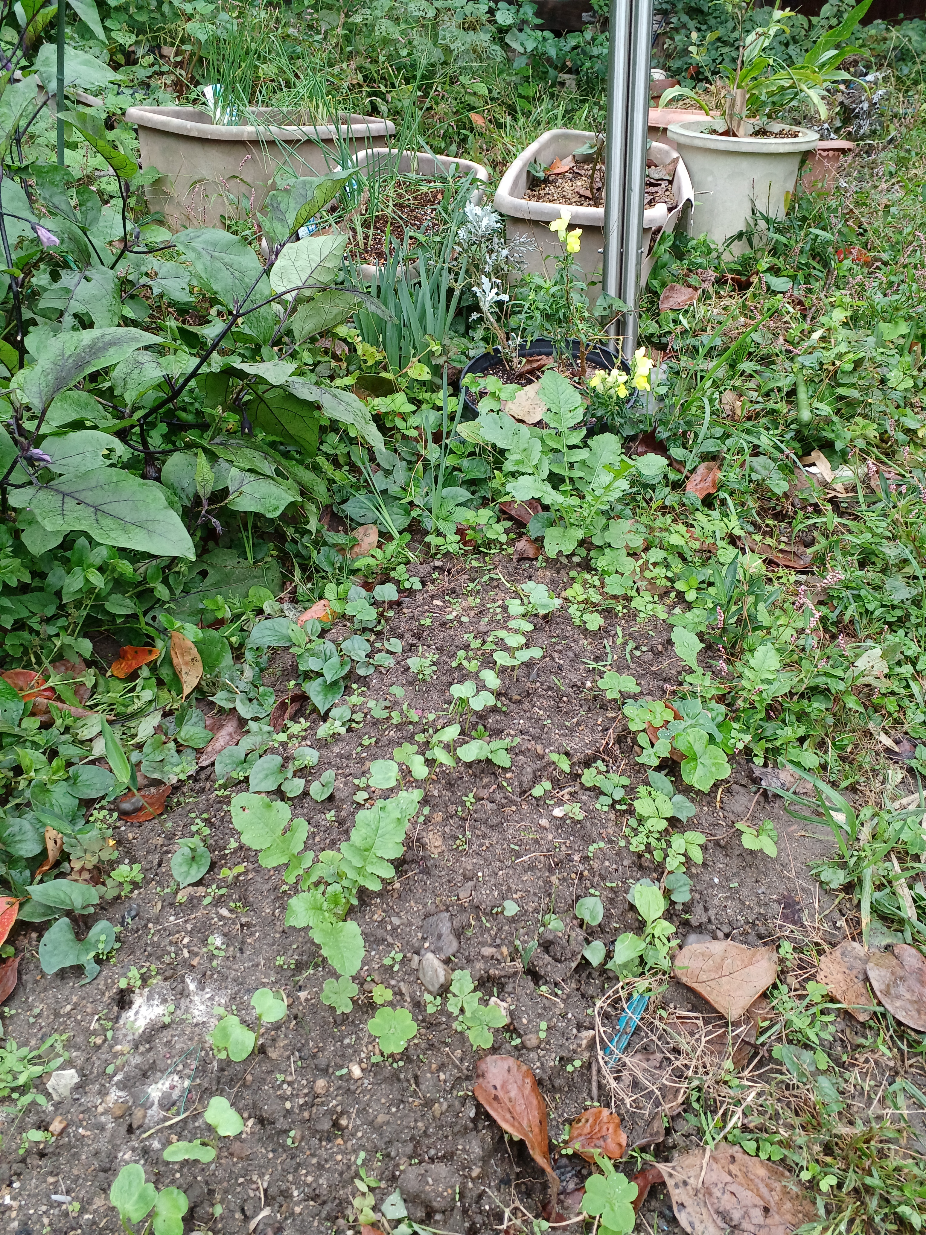 ちなみに2株の間も種を蒔いたので、ちょっとづつ芽が出てきています。